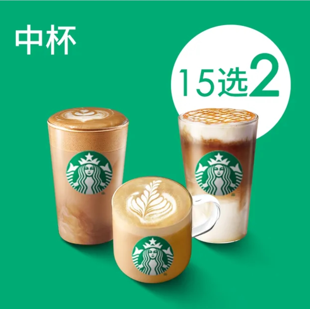 [经典必喝]星巴克咖啡双杯套 餐(中杯)